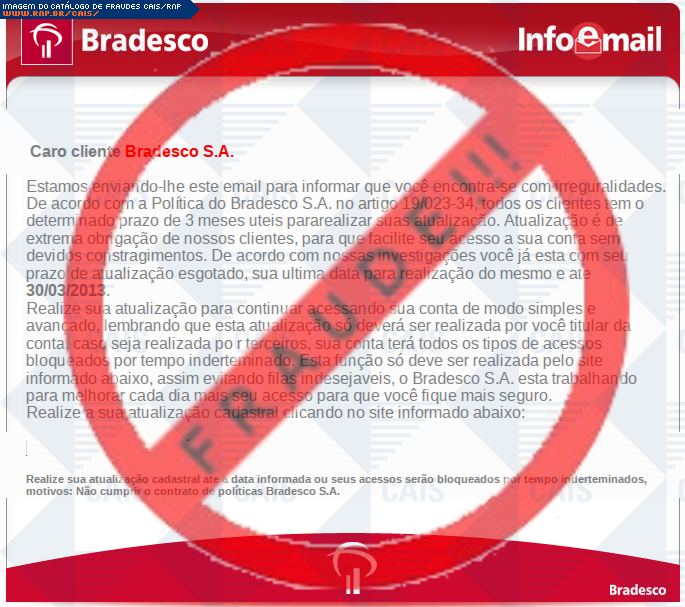 | assunto | Prezado(A) Cliente,Internet Banking Bradesco - Divergências Cadastrais. | |