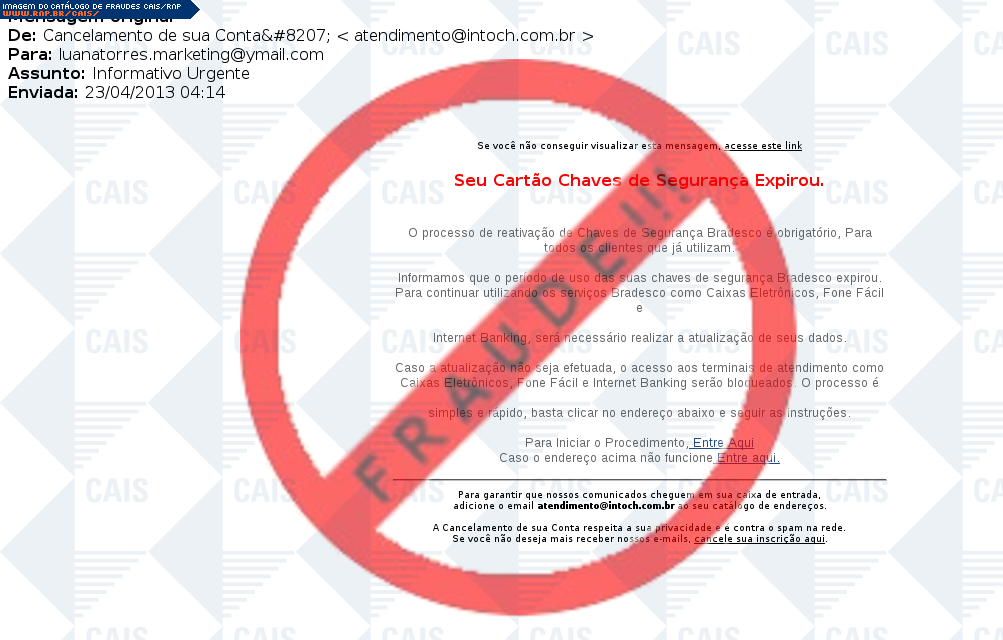 | assunto | Aviso importante, Cliente Banco do Bradesco - Segundo aviso | |
