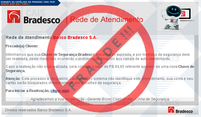 | assunto | Informativo Chave de Seguranca Bradesco Bloqueio Automatico. | |