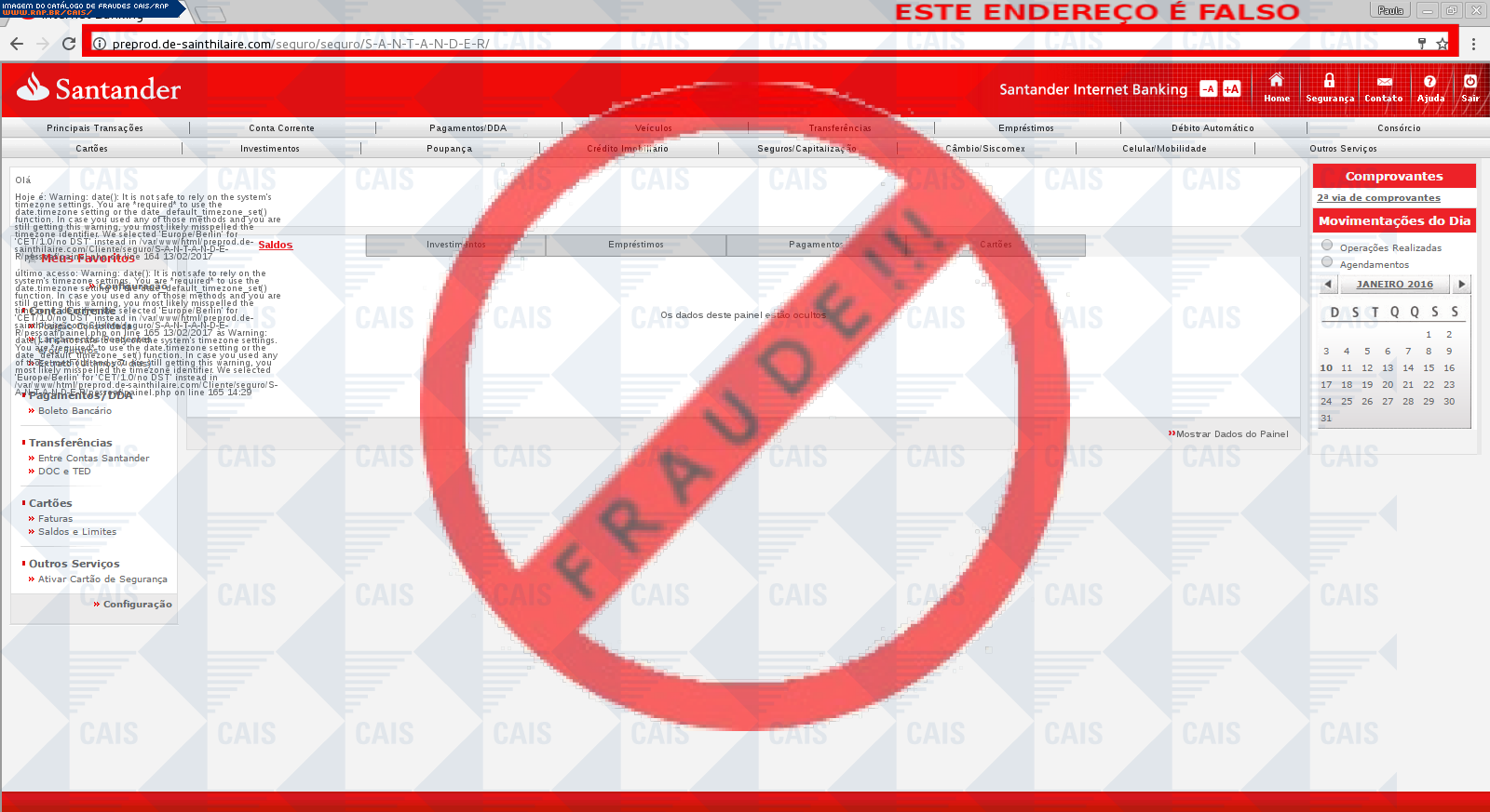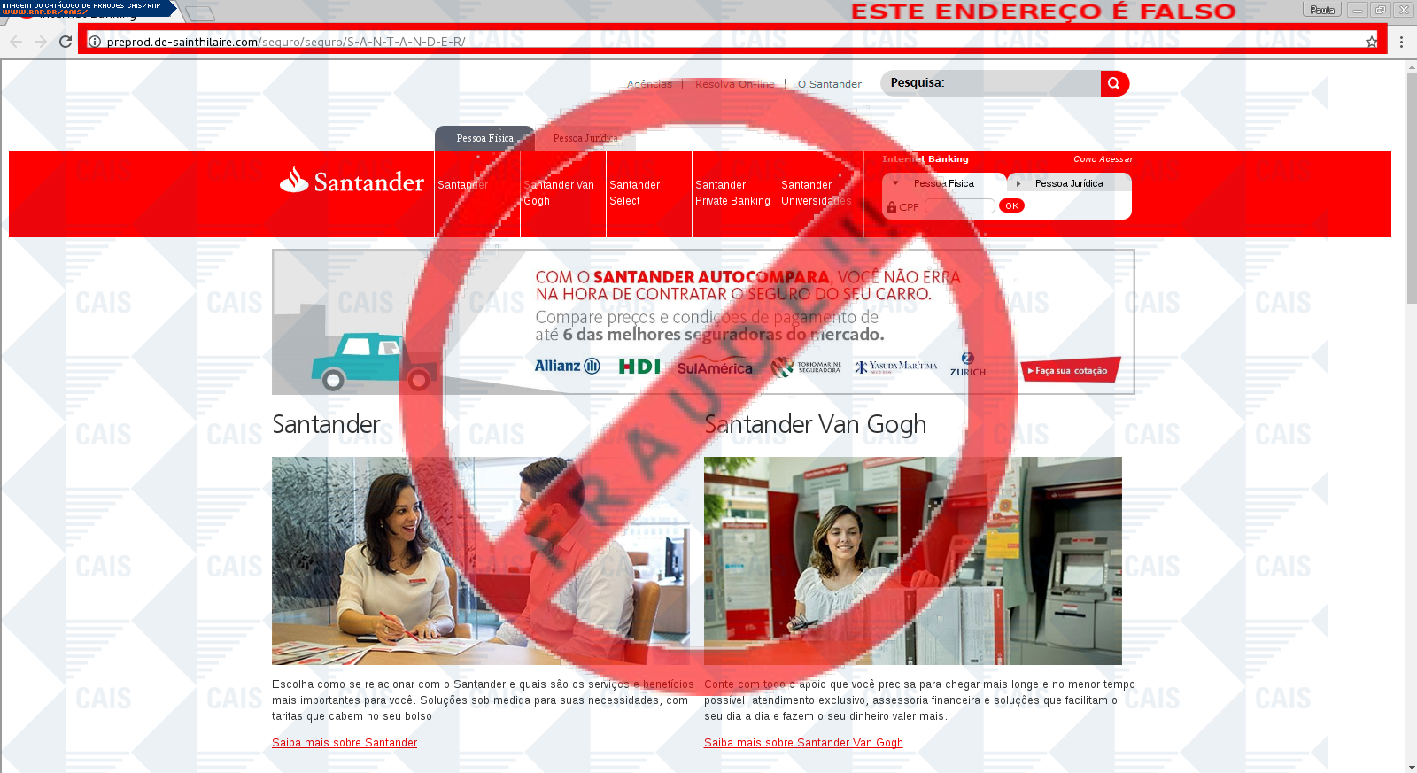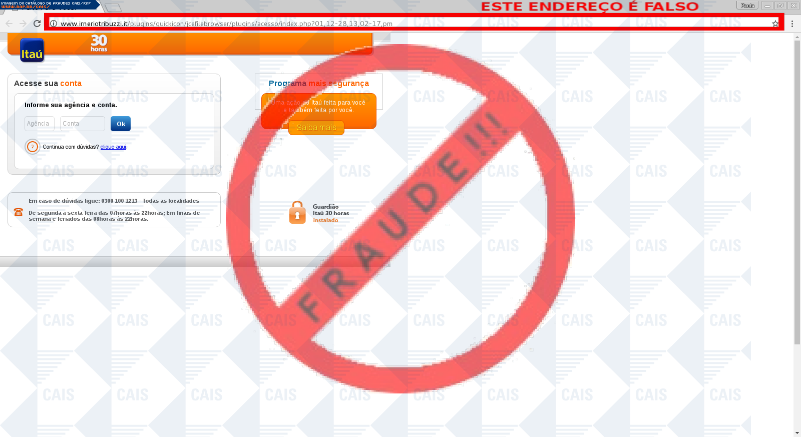 Esta página tem função informativa e educativa. Exibe uma coleção de imagens de phishing scam (fraudes eletrônicas) ou malware (código malicioso) veiculados por meio de spam (e-mail não-solicitado). Trata-se de conteúdo exemplificativo, não exaustivo, uma vez que não é possível contemplar todos os casos de fraudes existentes. Assim, caso você tenha conhecimento de um exemplar que não esteja aqui presente, isto não significa que não seja válido ou real. Inclusive incentivamos que você o envie para análise do CAIS para que, se for o caso, passe a integrar o nosso acervo.