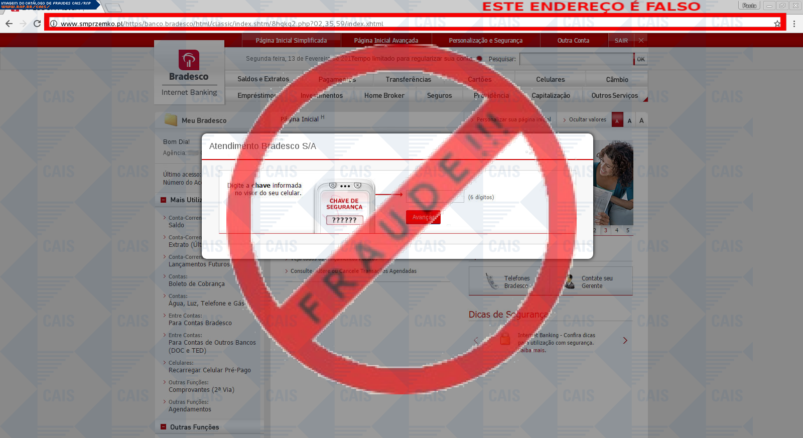 | tipo | FRAUDE - Bradesco - Chave de segurança | ID: 52006 |