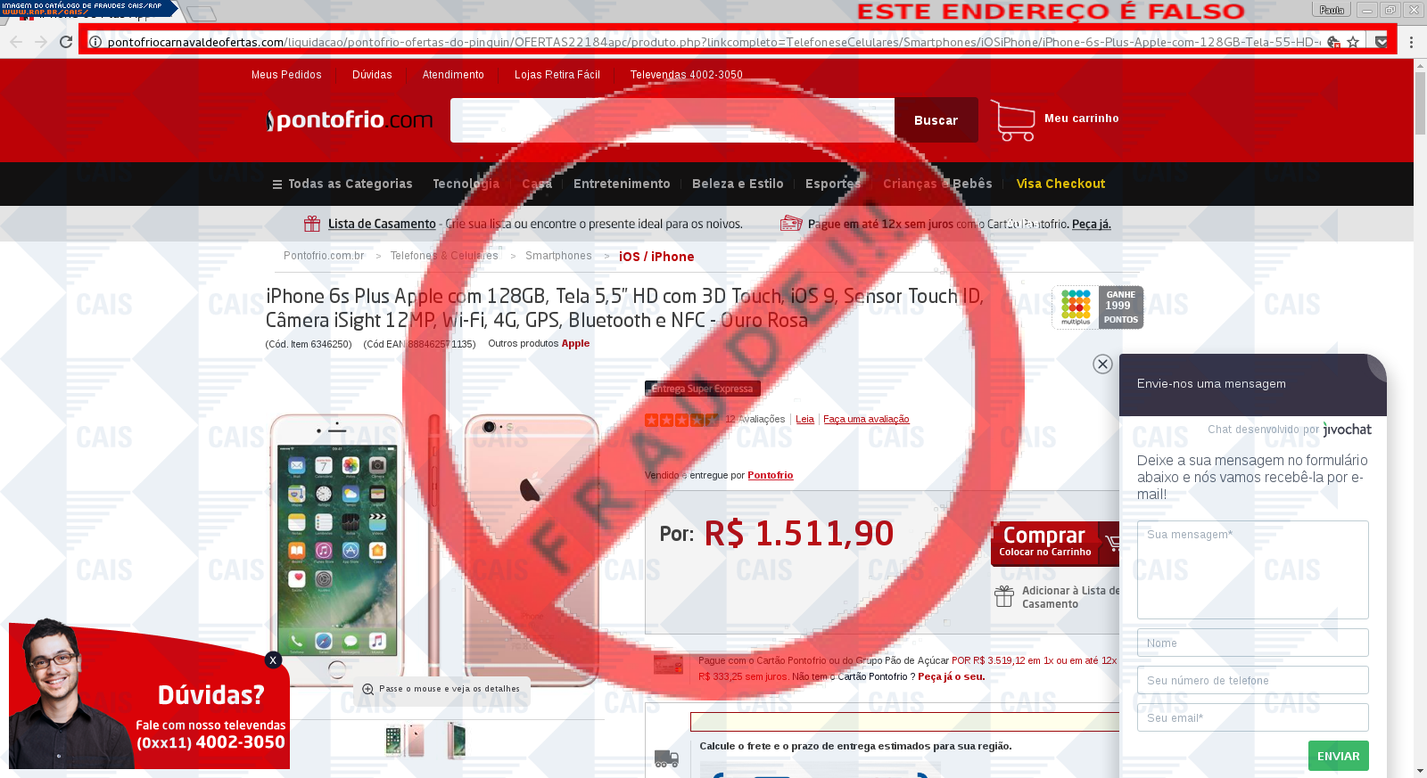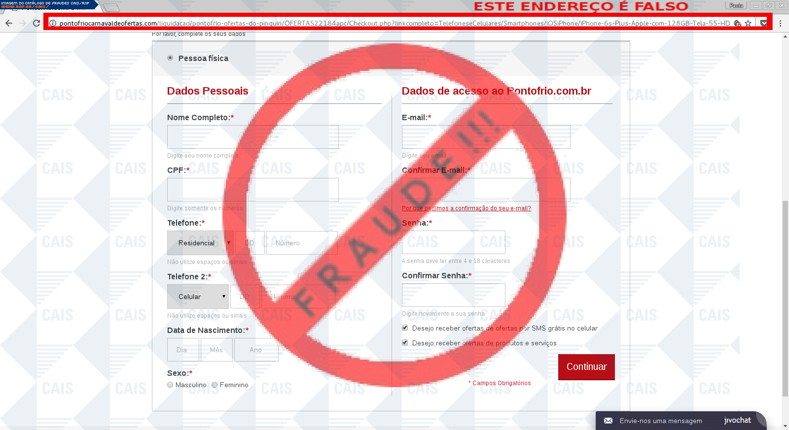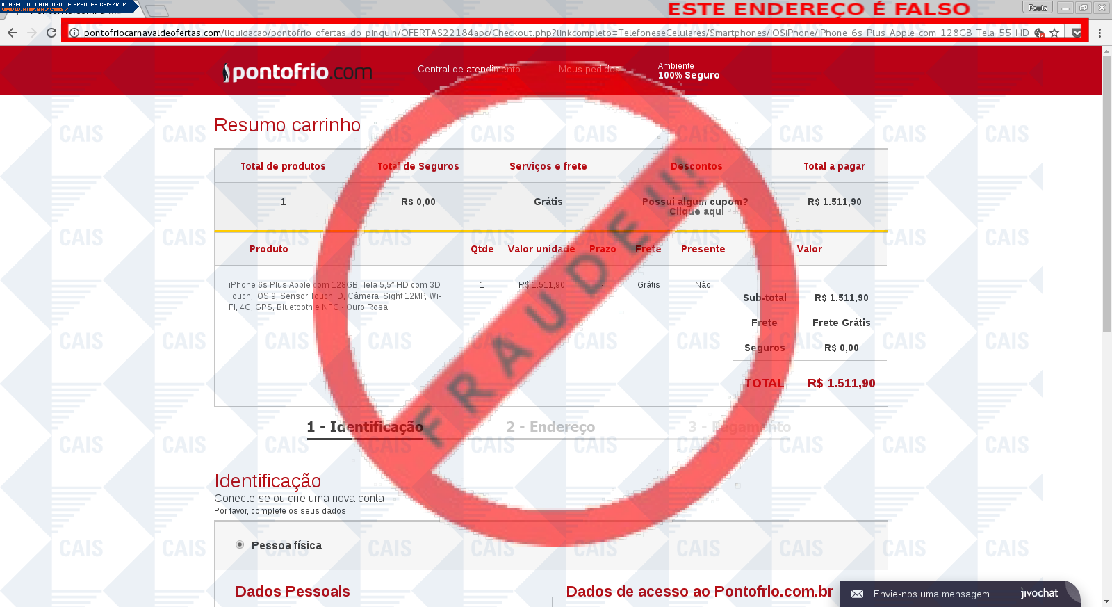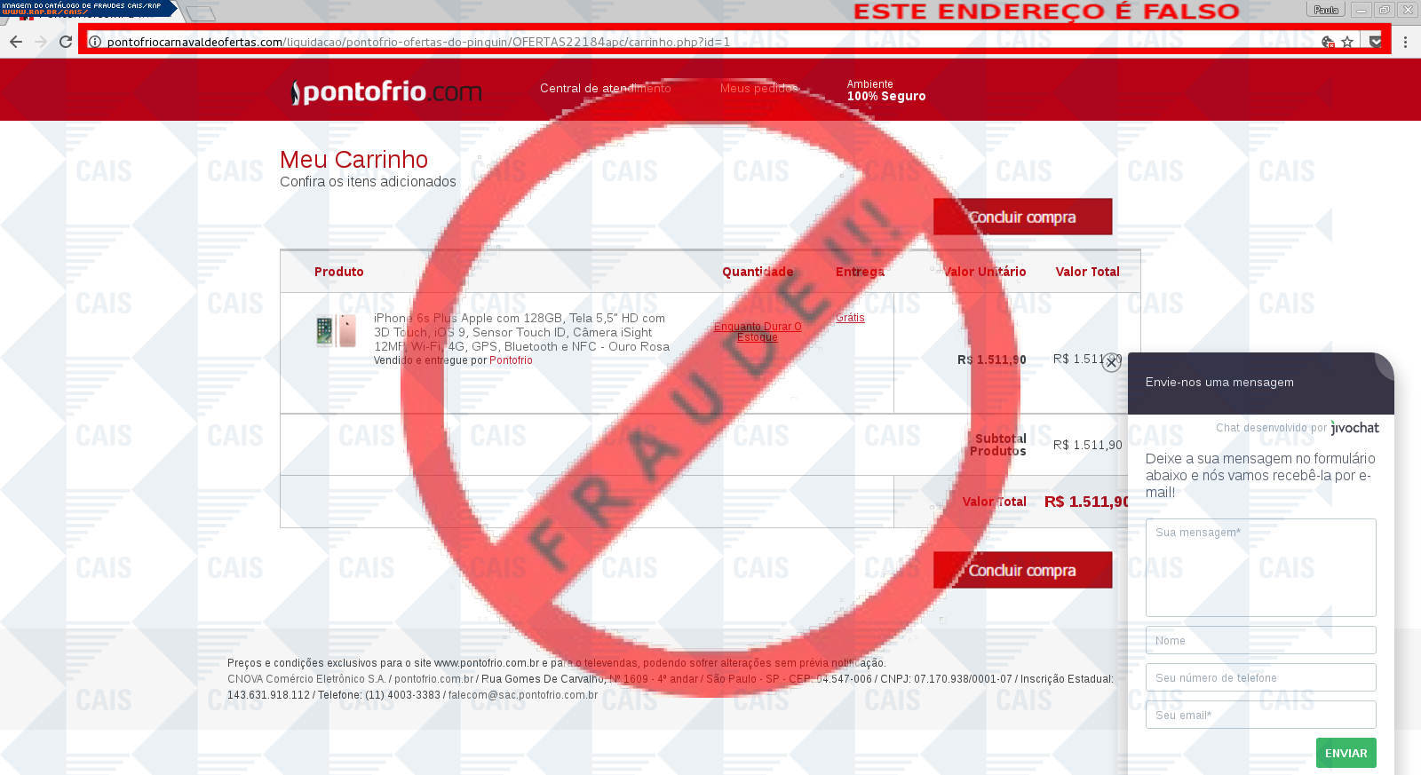 | assunto | Denúncia Site Falso - Ponto Frio | |