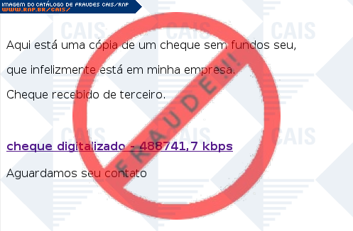 | comentário | O usuário recebe uma mensagem contendo um chueque disponível para download, no entanto o arquivo originado é malicioso criado para roubar informações da vítima e instalar outros arquivos fraudulentos com o nome de JS/Downloader.Agent.69_L. | |