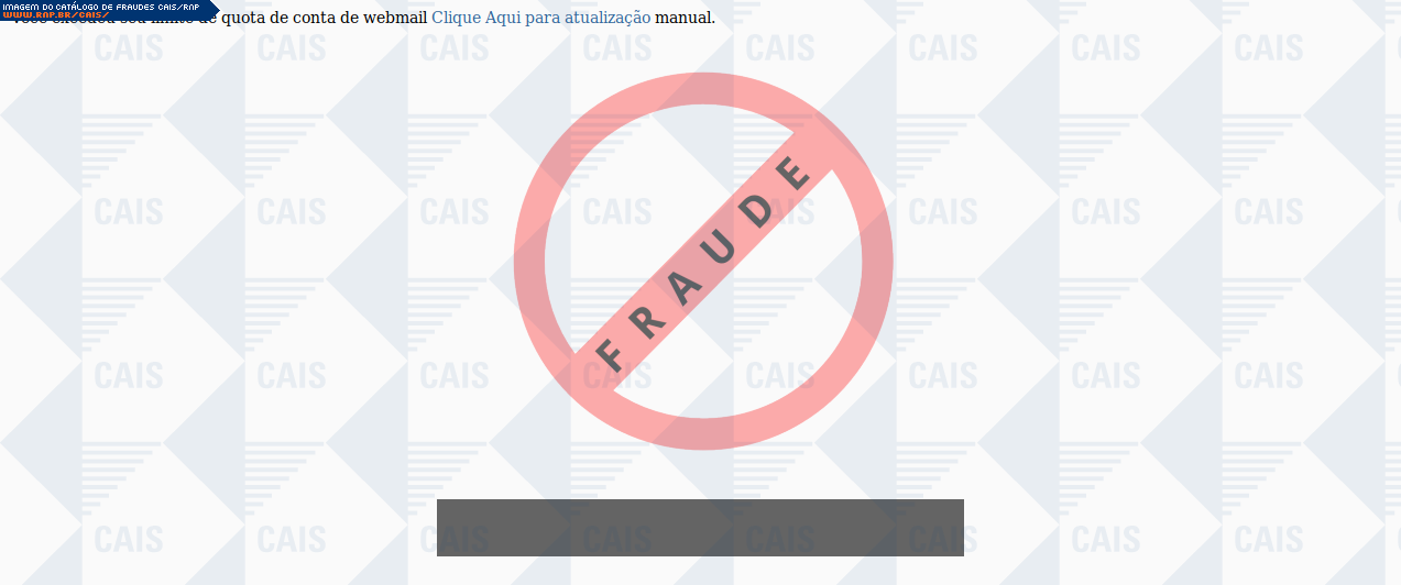 comentário O usuário recebe uma mensagem informando que sua quota de conta de e-mail atingiu o limite sendo necessário uma atualização no link disponibilizado, entretanto a página é falsa criada para roubar os dados do e-mail da vítima.