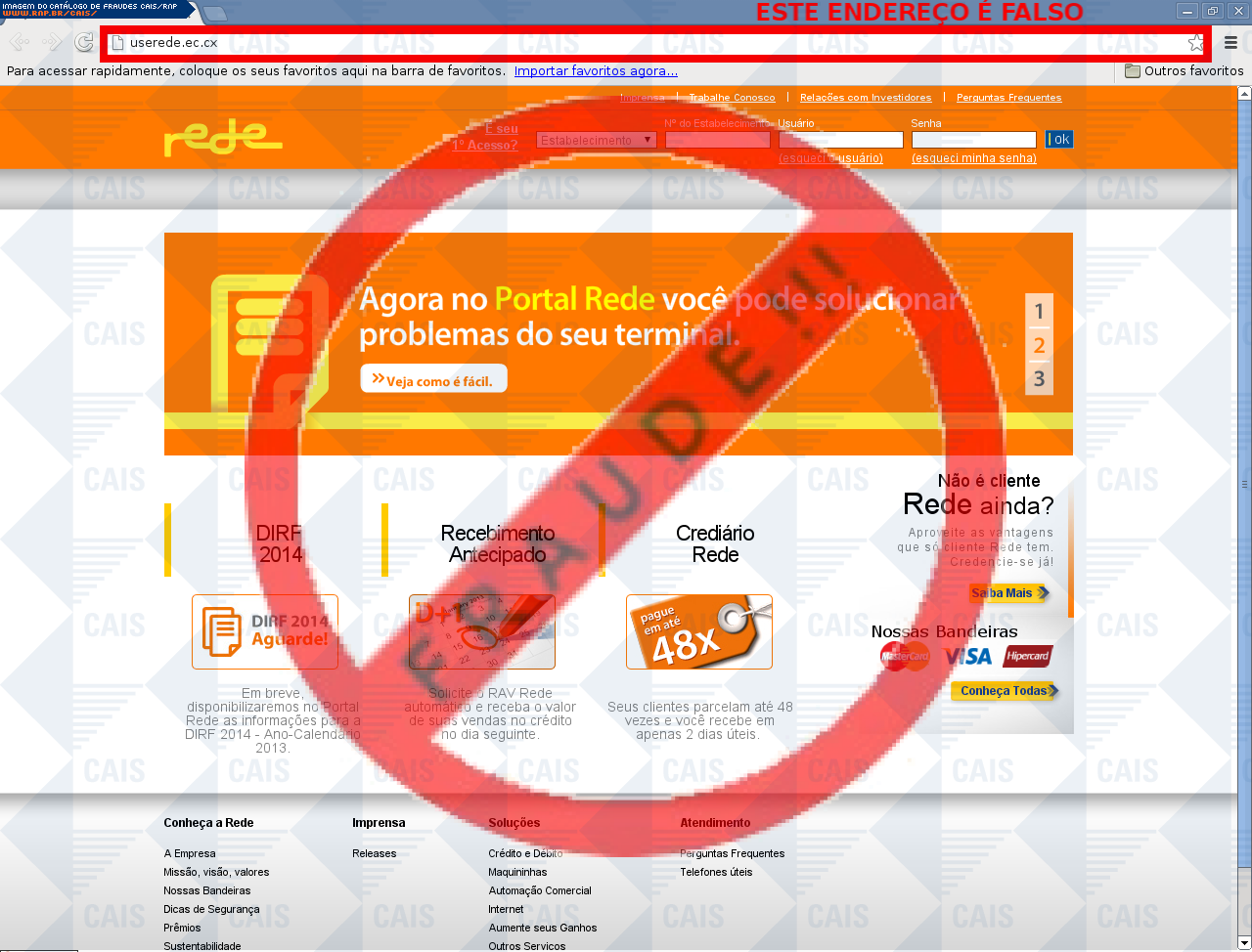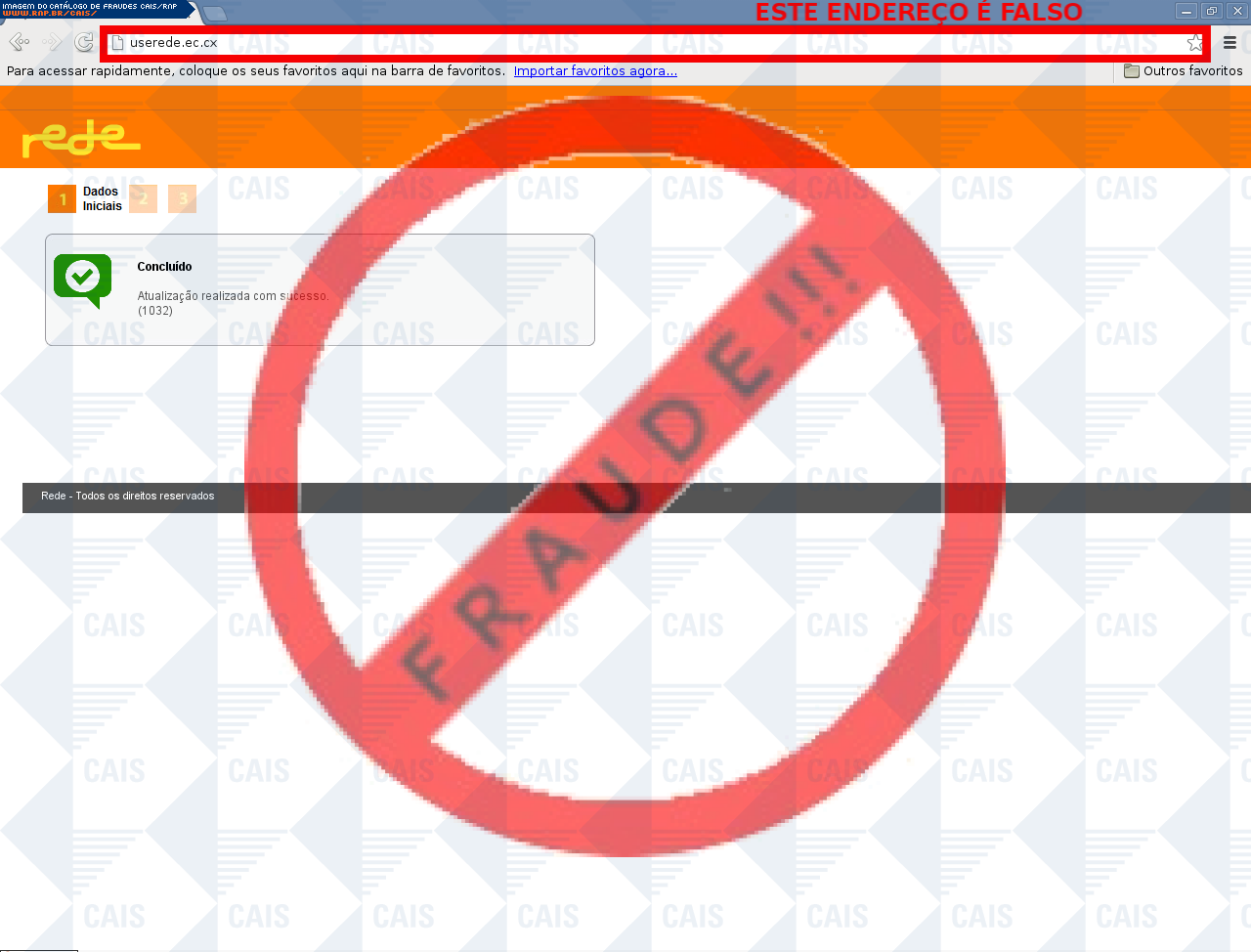 Com a disponibilização pública deste serviço, não é intenção do Centro de Atendimento a Incidentes de Segurança (CAIS) da Rede Nacional de Ensino e Pesquisa (RNP) violar direitos autorais sobre marcas registradas ou logotipos de empresas que porventura constem das amostras. O objetivo é tão somente alertar os usuários sobre as espécies de golpes que se utilizam de tais propriedades intelectuais ou industriais de forma criminosa.