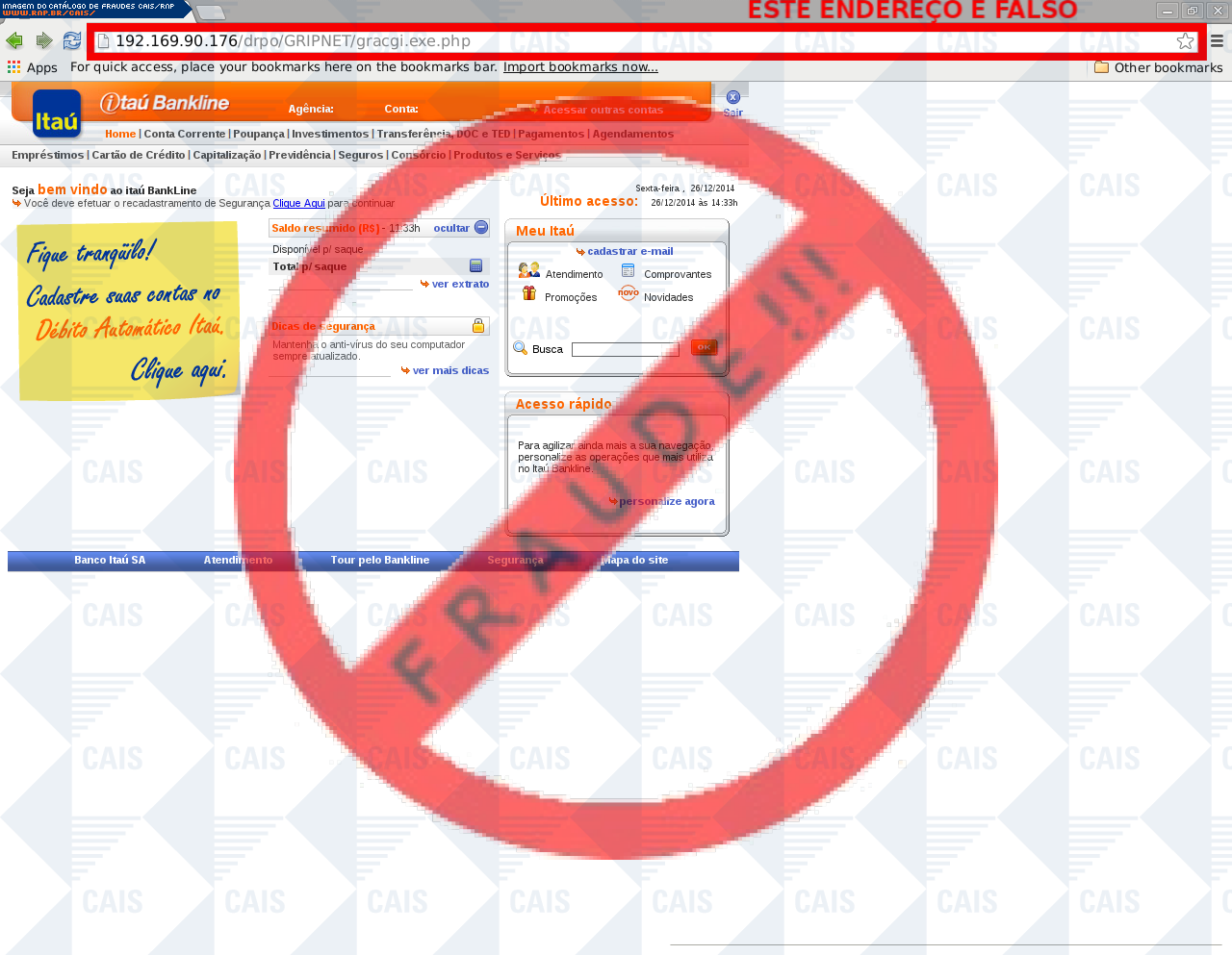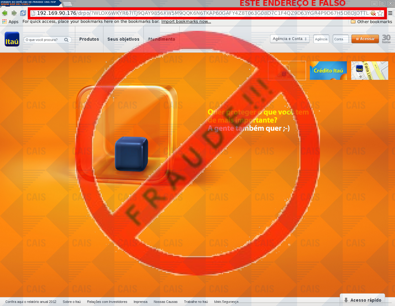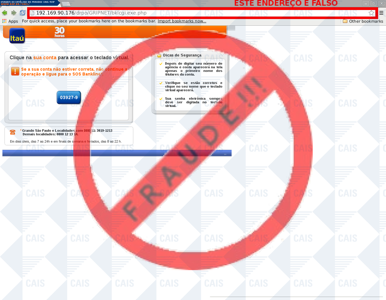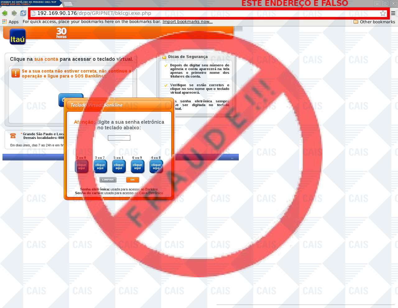 Esta página tem função informativa e educativa. Exibe uma coleção de imagens de phishing scam (fraudes eletrônicas) ou malware (código malicioso) veiculados por meio de spam (e-mail não-solicitado). Trata-se de conteúdo exemplificativo, não exaustivo, uma vez que não é possível contemplar todos os casos de fraudes existentes. Assim, caso você tenha conhecimento de um exemplar que não esteja aqui presente, isto não significa que não seja válido ou real. Inclusive incentivamos que você o envie para análise do CAIS para que, se for o caso, passe a integrar o nosso acervo.