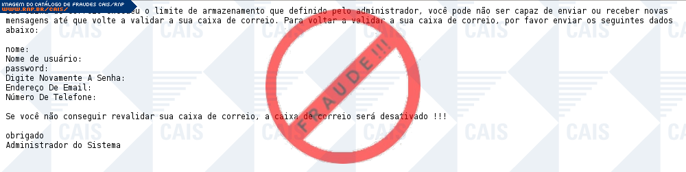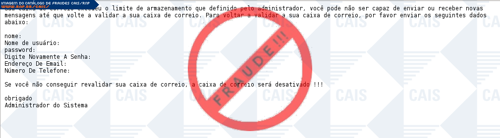 | tipo | FRAUDE - Correio Limite de Armazenamento | ID: 36026 |