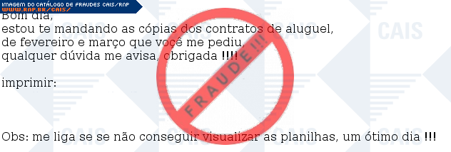 | comentário | A vítima recebe uma mensagem, contendo cópias de contratos de aluguel, mas ao clicar no link para visualizar a planilha, inicia-se o download de um malware. | |