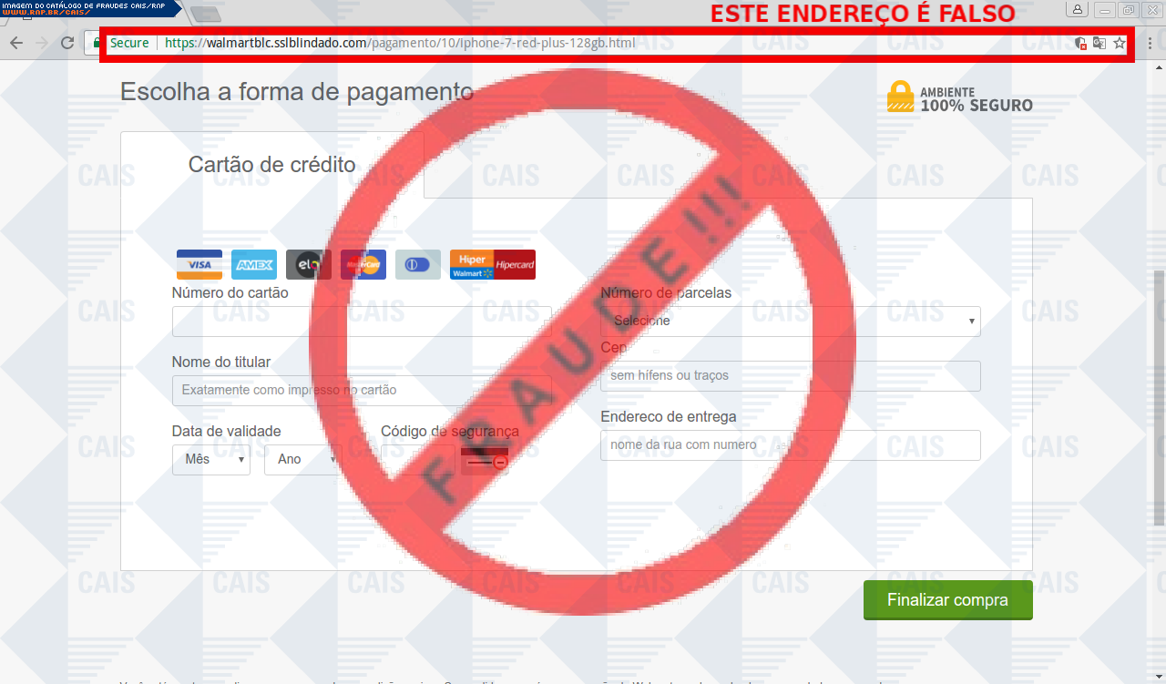 Esta página tem função informativa e educativa. Exibe uma coleção de imagens de phishing scam (fraudes eletrônicas) ou malware (código malicioso) veiculados por meio de spam (e-mail não-solicitado). Trata-se de conteúdo exemplificativo, não exaustivo, uma vez que não é possível contemplar todos os casos de fraudes existentes. Assim, caso você tenha conhecimento de um exemplar que não esteja aqui presente, isto não significa que não seja válido ou real. Inclusive incentivamos que você o envie para análise do CAIS para que, se for o caso, passe a integrar o nosso acervo.
