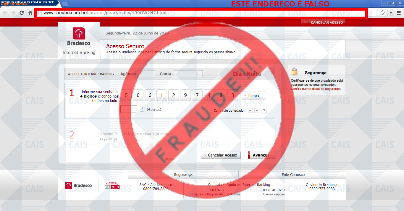 | tipo | FRAUDE - Chave de Segurança Bradesco | ID: 21656 |
