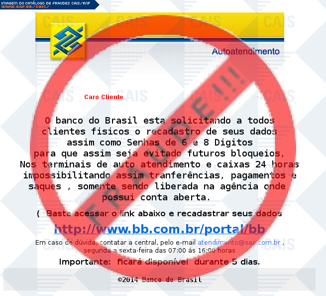 | assunto | ( Banco do Brasil - Alerta Ref° 01-12-2014 ) | |