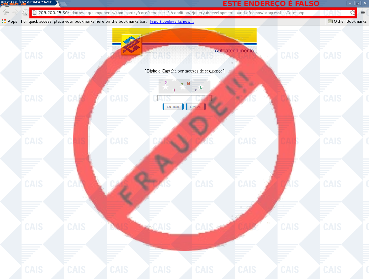 Com a disponibilização pública deste serviço, não é intenção do Centro de Atendimento a Incidentes de Segurança (CAIS) da Rede Nacional de Ensino e Pesquisa (RNP) violar direitos autorais sobre marcas registradas ou logotipos de empresas que porventura constem das amostras. O objetivo é tão somente alertar os usuários sobre as espécies de golpes que se utilizam de tais propriedades intelectuais ou industriais de forma criminosa.
