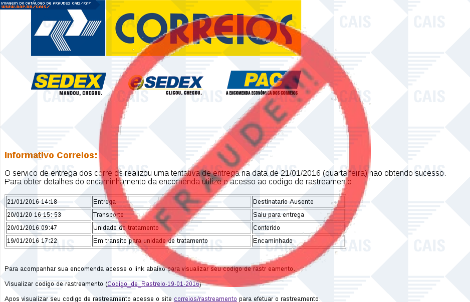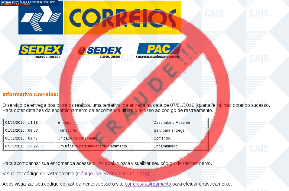 | tipo | FRAUDE - Correios rastreamento encomenda | ID: 45921 |