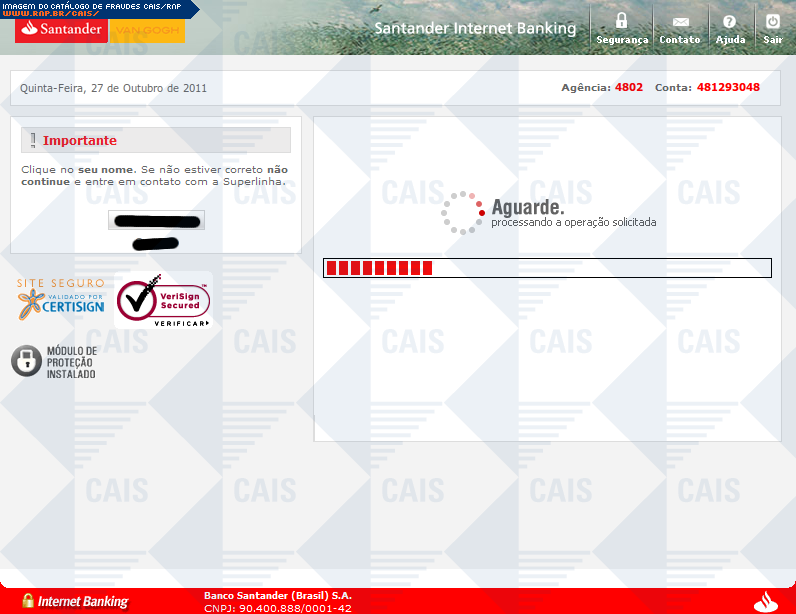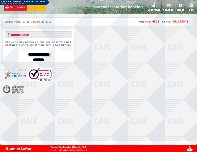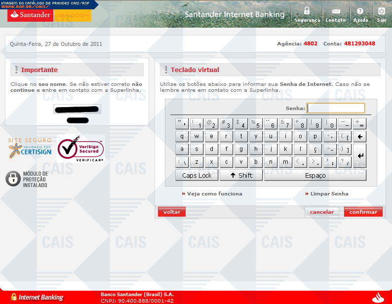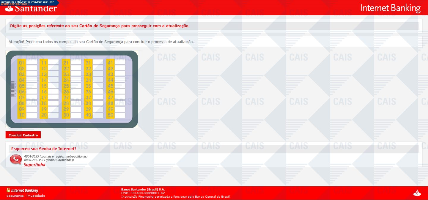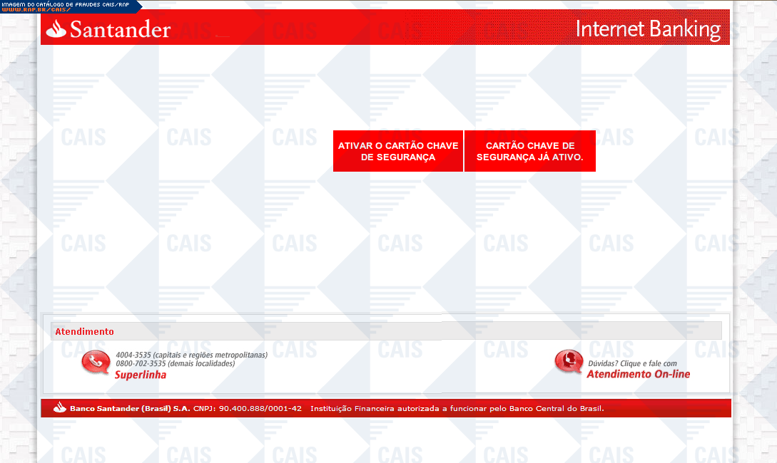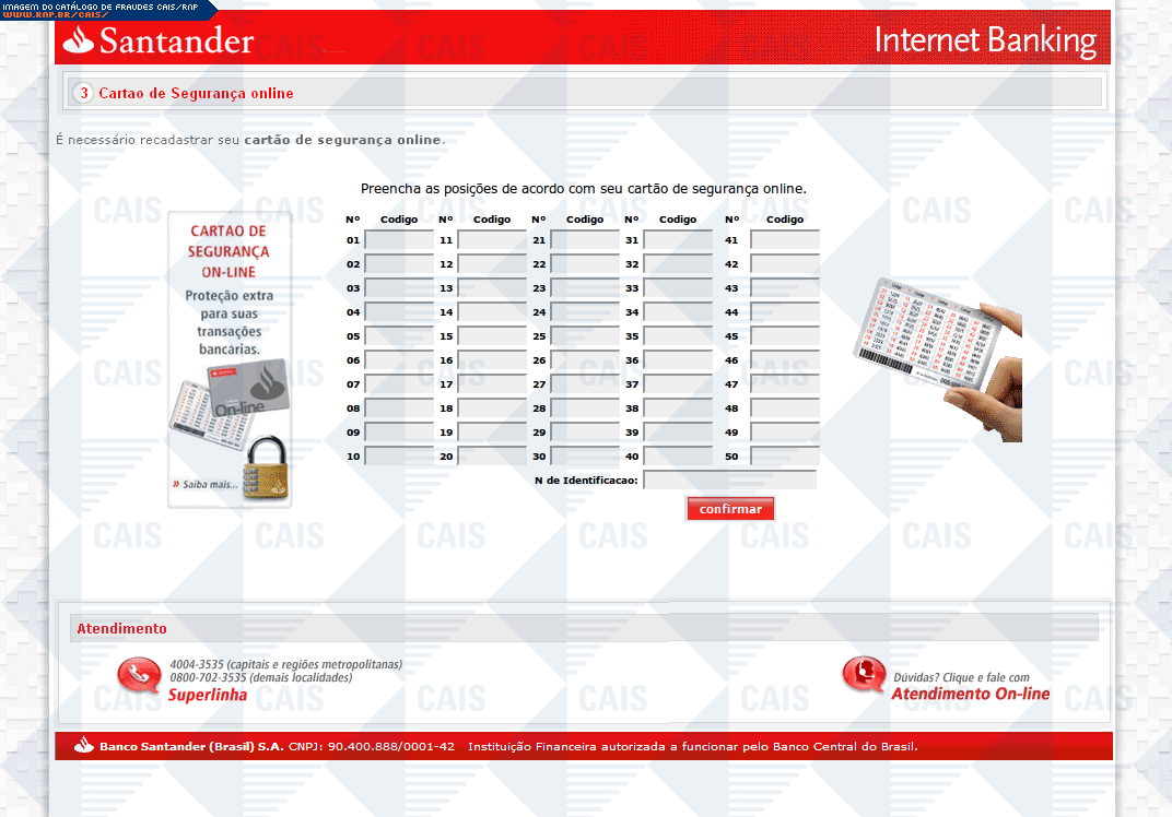 | tipo | Cartão de segurança Santander | ID: 13461 |