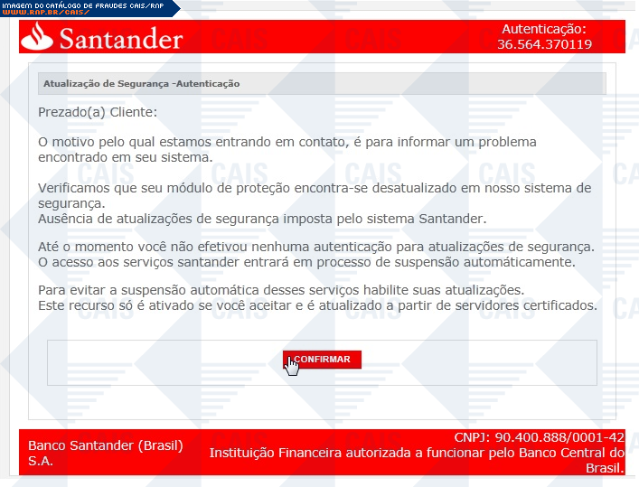 | tipo | Atualização de segurança Santander | ID: 13456 |