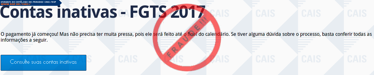 | comentário | A vítima recebe uma mensagem informando sobre valores de sua conta inativa do FGTS que esta disponível para saque e disponibiliza um link para o consulta do extrato, no entanto a página é falsa criada para roubar informações da vítima. | |