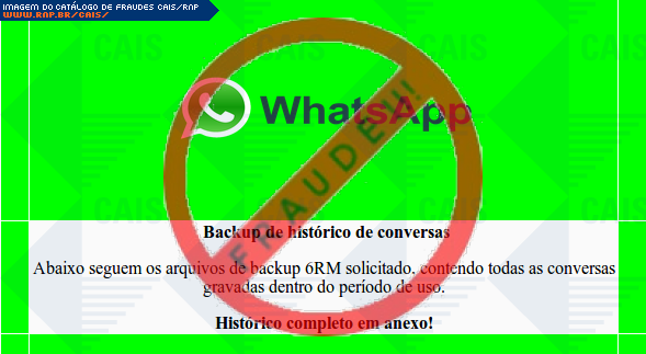 | comentário | A vítima recebe um e-mail contendo um arquivo de backup de conversas do Whatsapp, no entanto o arquivo originado é malicioso criado para roubar informações da vítima e instalar outros arquivos fraudulentos com o nome de Gen:Variant.Razy.184192. | |