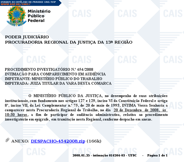 | tipo | Fraude Justiça Federal | ID: 452 |