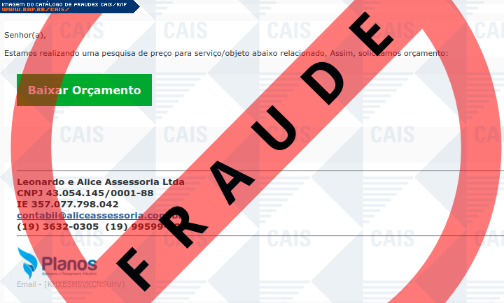 Esta página tem função informativa e educativa. Exibe uma coleção de imagens de phishing scam (fraudes eletrônicas) ou malware (código malicioso) veiculados por meio de spam (e-mail não-solicitado). Trata-se de conteúdo exemplificativo, não exaustivo, uma vez que não é possível contemplar todos os casos de fraudes existentes. Assim, caso você tenha conhecimento de um exemplar que não esteja aqui presente, isto não significa que não seja válido ou real. Inclusive incentivamos que você o envie para análise do CAIS para que, se for o caso, passe a integrar o nosso acervo.