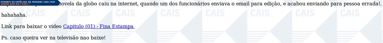 | arquivo malicioso | Capitulo (01) - Fina Estampa.exe | |