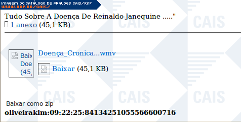 | comentário | A fraude contém um link para um suposto vídeo sobre a doença do ator Reinaldo Gianecchini. O conteúdo malicioso não estava mais disponível no momento da análise. | |