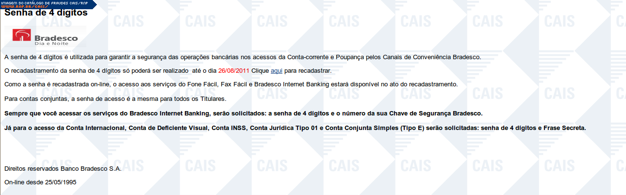 | assunto | Recadastramento de senha - Bradesco S/A | |