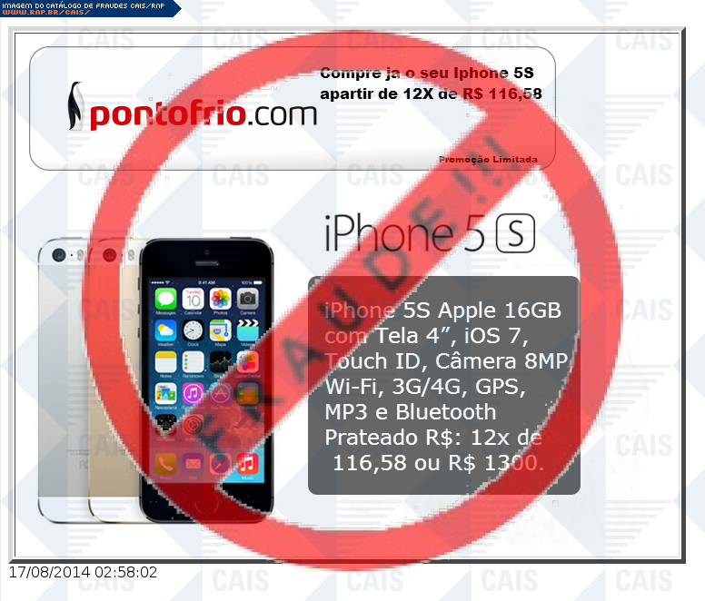 | tipo | FRAUDE - Ponto Frio | ID: 32236 |