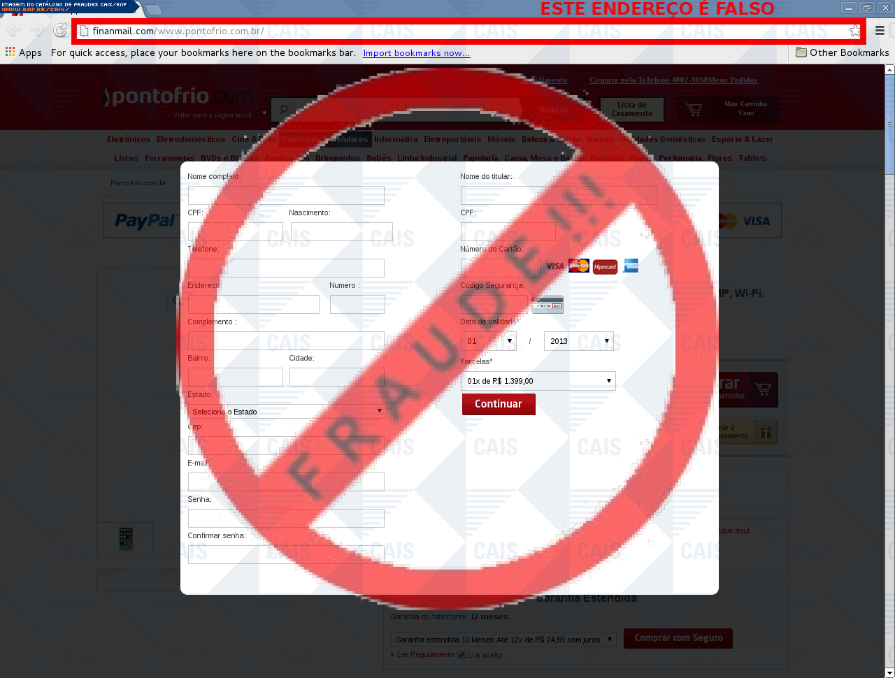 | comentário | A vítima recebe um e-mail informando sobre promoções no site de compra da Ponto Frio disponibilizando link de vários produtos em desconto, no entanto a página é falsa destinada a roubar as informações pessoais e do cartão do usuário. | |