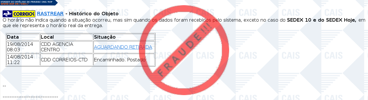 | tipo | FRAUDE - Correios Rastreamento | ID: 32286 |