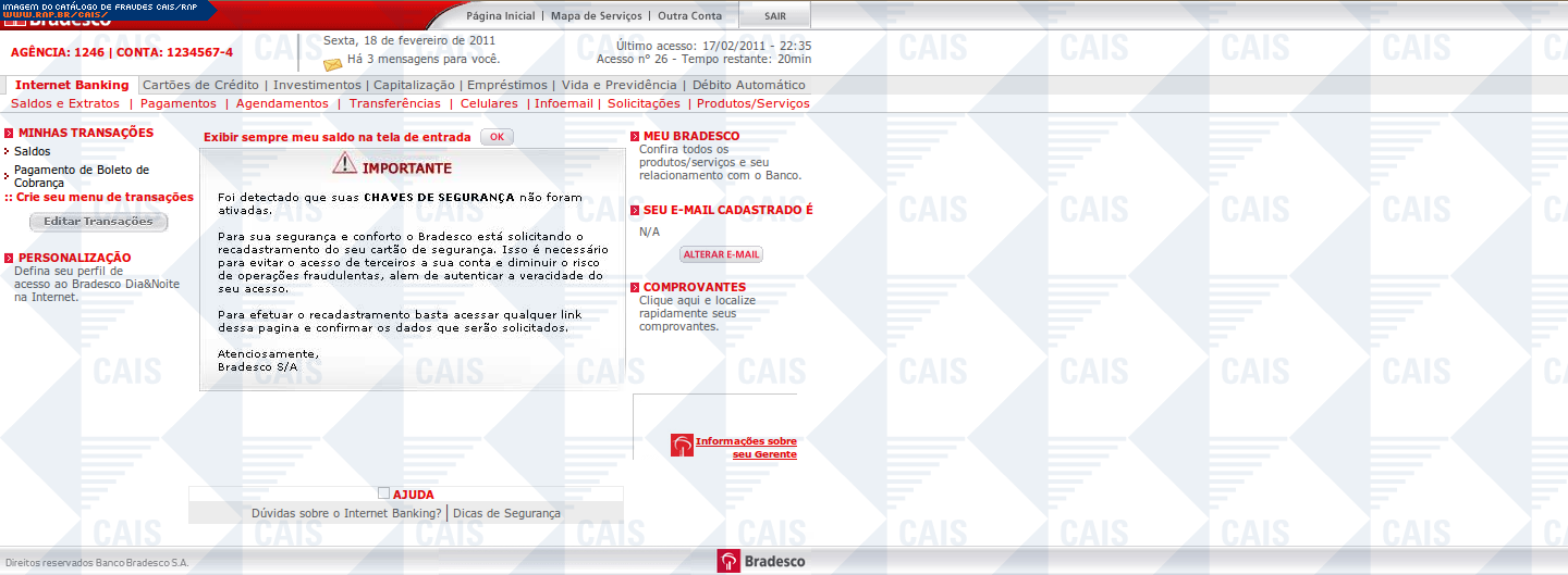 | assunto | Infoemail Bradesco - Atualização das Chaves de Segurança 2011 | |