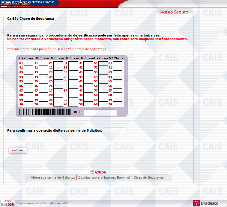 | tipo | Atualização de segurança Bradesco | ID: 10586 |