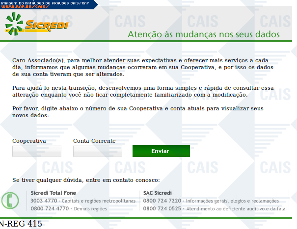 | comentário | Falsa mensagem em nome da Sicredi, não possui qualquer informação relevante além de um link. Tal link leva à uma falsa página da Sicredi, na qual dados confidenciais são solicitados. | |
