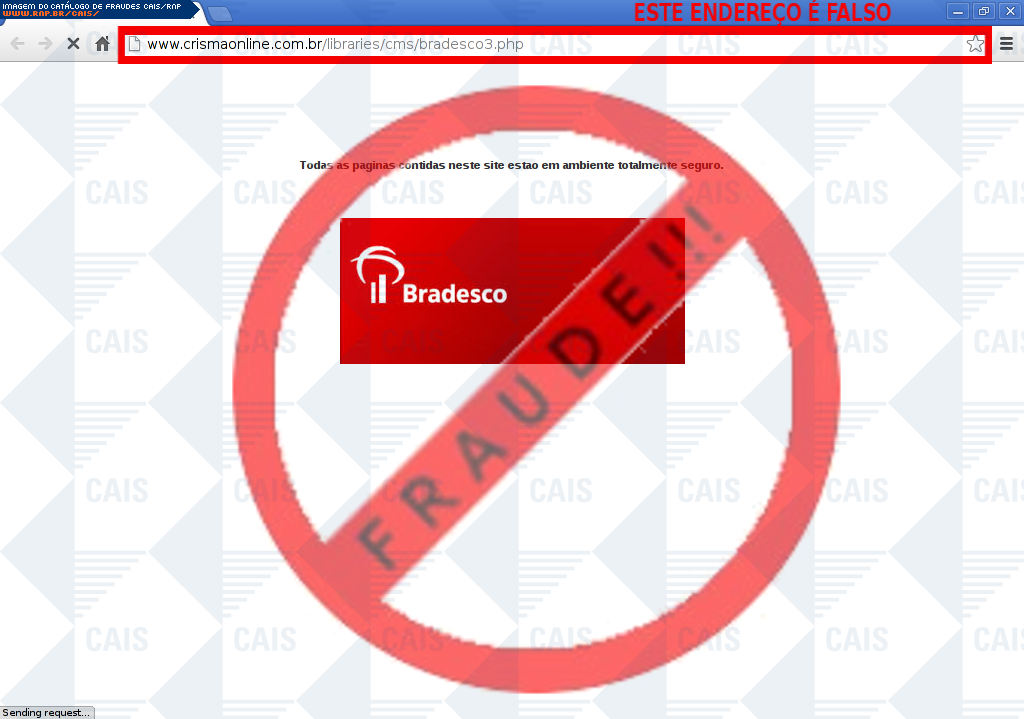 Com a disponibilização pública deste serviço, não é intenção do Centro de Atendimento a Incidentes de Segurança (CAIS) da Rede Nacional de Ensino e Pesquisa (RNP) violar direitos autorais sobre marcas registradas ou logotipos de empresas que porventura constem das amostras. O objetivo é tão somente alertar os usuários sobre as espécies de golpes que se utilizam de tais propriedades intelectuais ou industriais de forma criminosa.