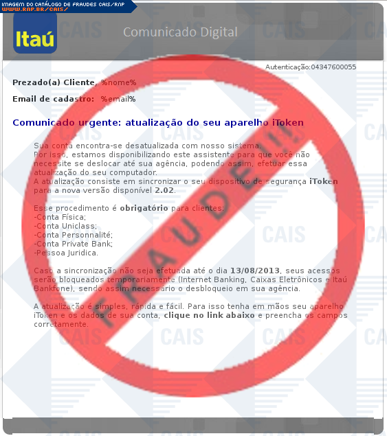 | tipo | FRAUDE - Atualização do Itoken | ID: 21671 |
