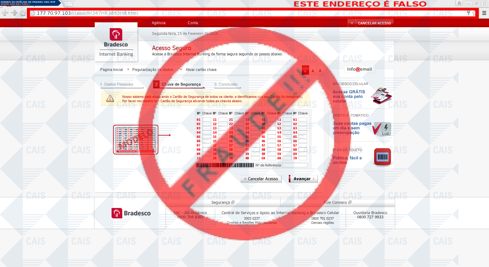 | tipo | FRAUDE - Banco Bradesco Chaves de Segurança | ID: 46421 |