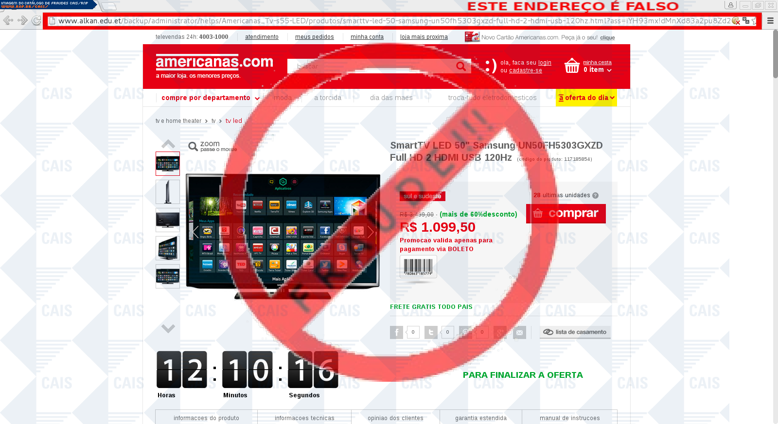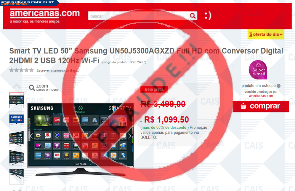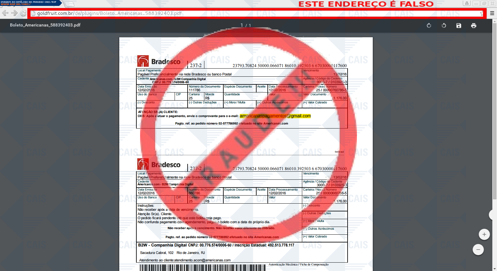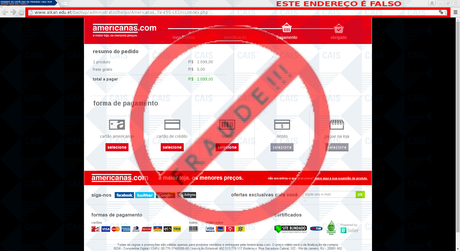 Esta página tem função informativa e educativa. Exibe uma coleção de imagens de phishing scam (fraudes eletrônicas) ou malware (código malicioso) veiculados por meio de spam (e-mail não-solicitado). Trata-se de conteúdo exemplificativo, não exaustivo, uma vez que não é possível contemplar todos os casos de fraudes existentes. Assim, caso você tenha conhecimento de um exemplar que não esteja aqui presente, isto não significa que não seja válido ou real. Inclusive incentivamos que você o envie para análise do CAIS para que, se for o caso, passe a integrar o nosso acervo.