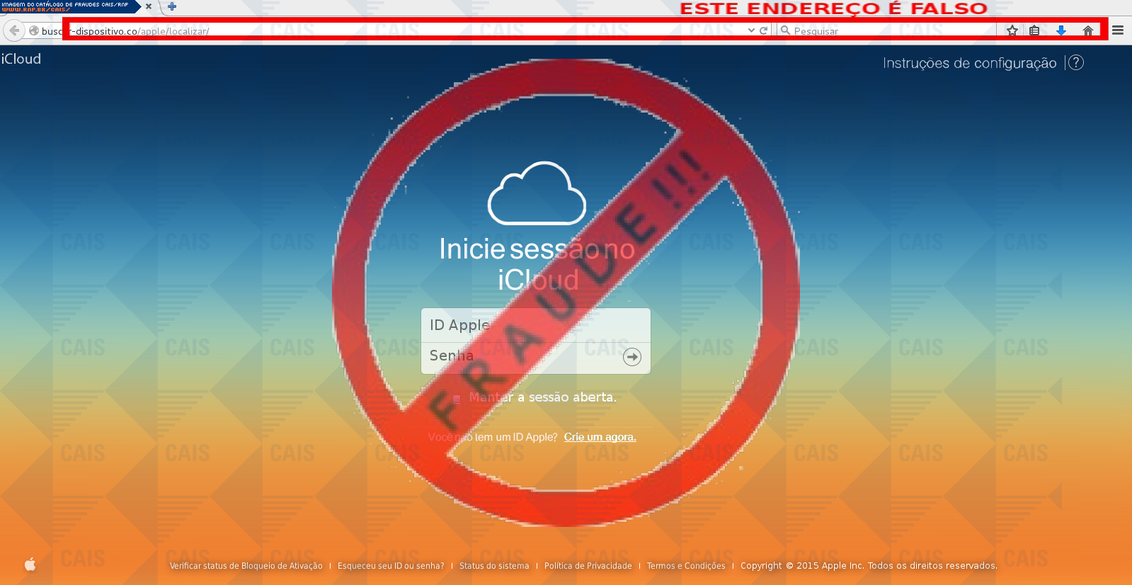 | comentário | A vítima tem o celular roubado e recebe um SMS dizendo que deve entrar em um link para localizar seu celular. Entretanto, o link leva a uma página falsa que rouba as credenciais de login do iCloud da vítima e posteriormente é usado pelo assaltante para desbloquear... (leia mais) | |