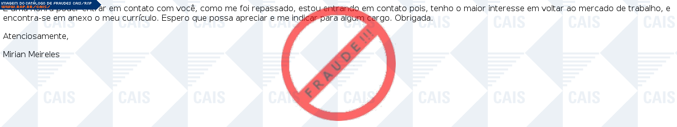 | arquivo malicioso | Curriculum Vitae Mirian.vbe | |