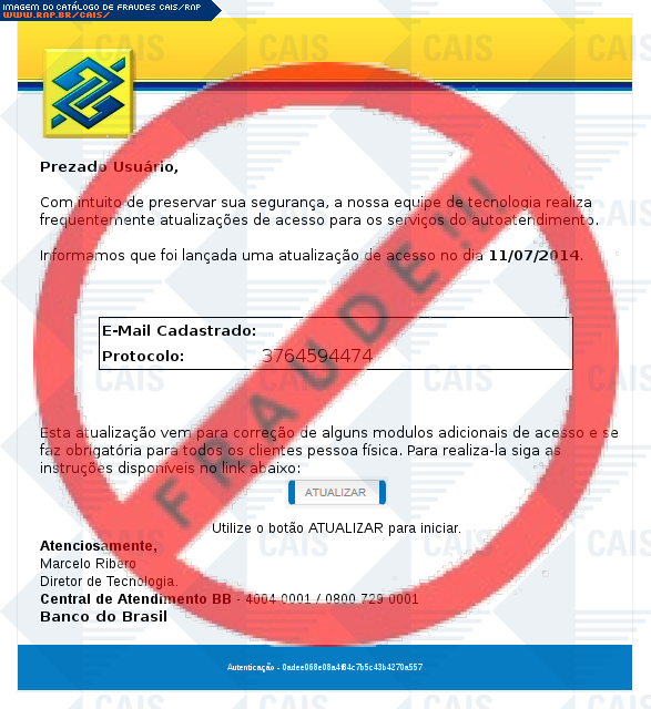 | tipo | FRAUDE - Banco do Brasil | ID: 31001 |