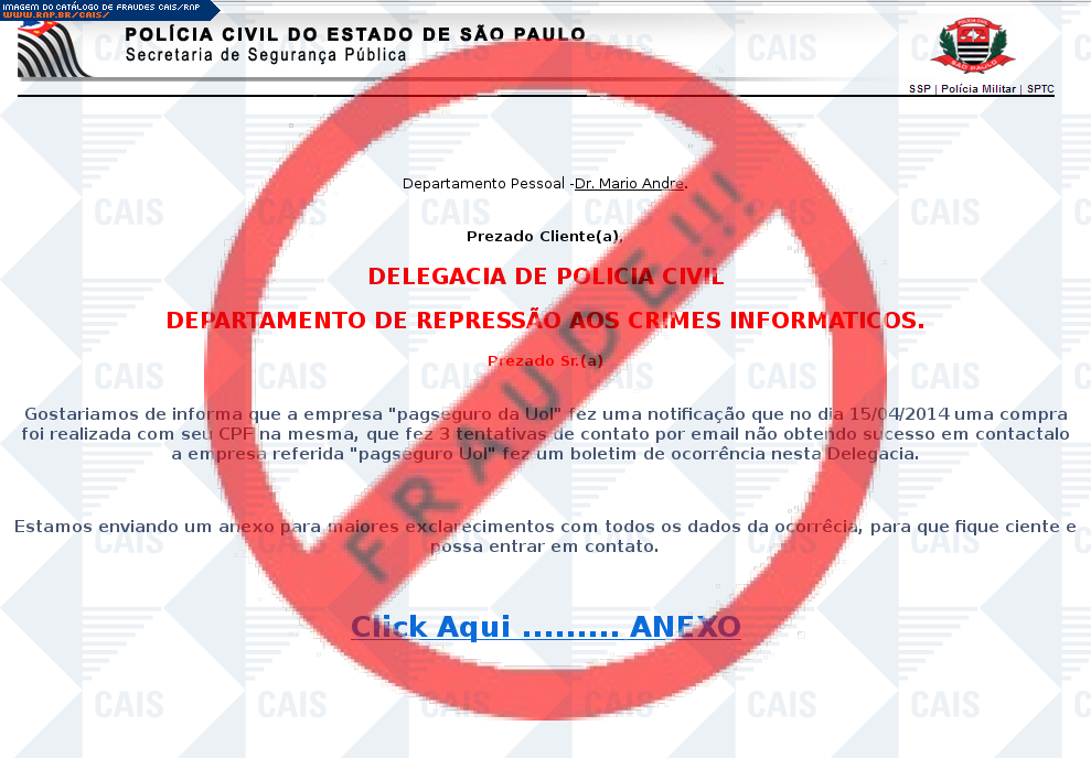 | assunto | Warning Phishing Anexo Fwd: Fwd: O DEPARTAMENTO DE REPRESSAO AOS CRIMES INFORMATICOS SOLICITA SUA ATENCAO PARA SEGUINTE DENUNCIA,LEIA. | |
