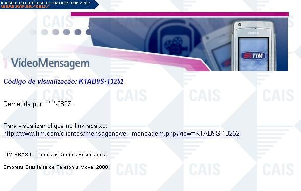 | tipo | Fraude VideoMensagem TIM | ID: 169 |