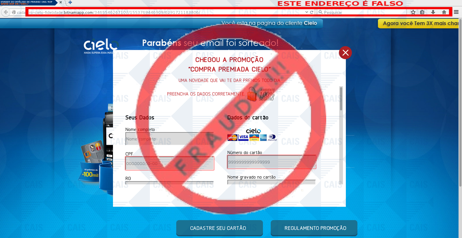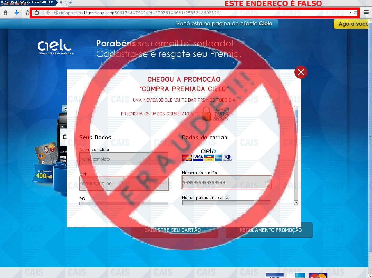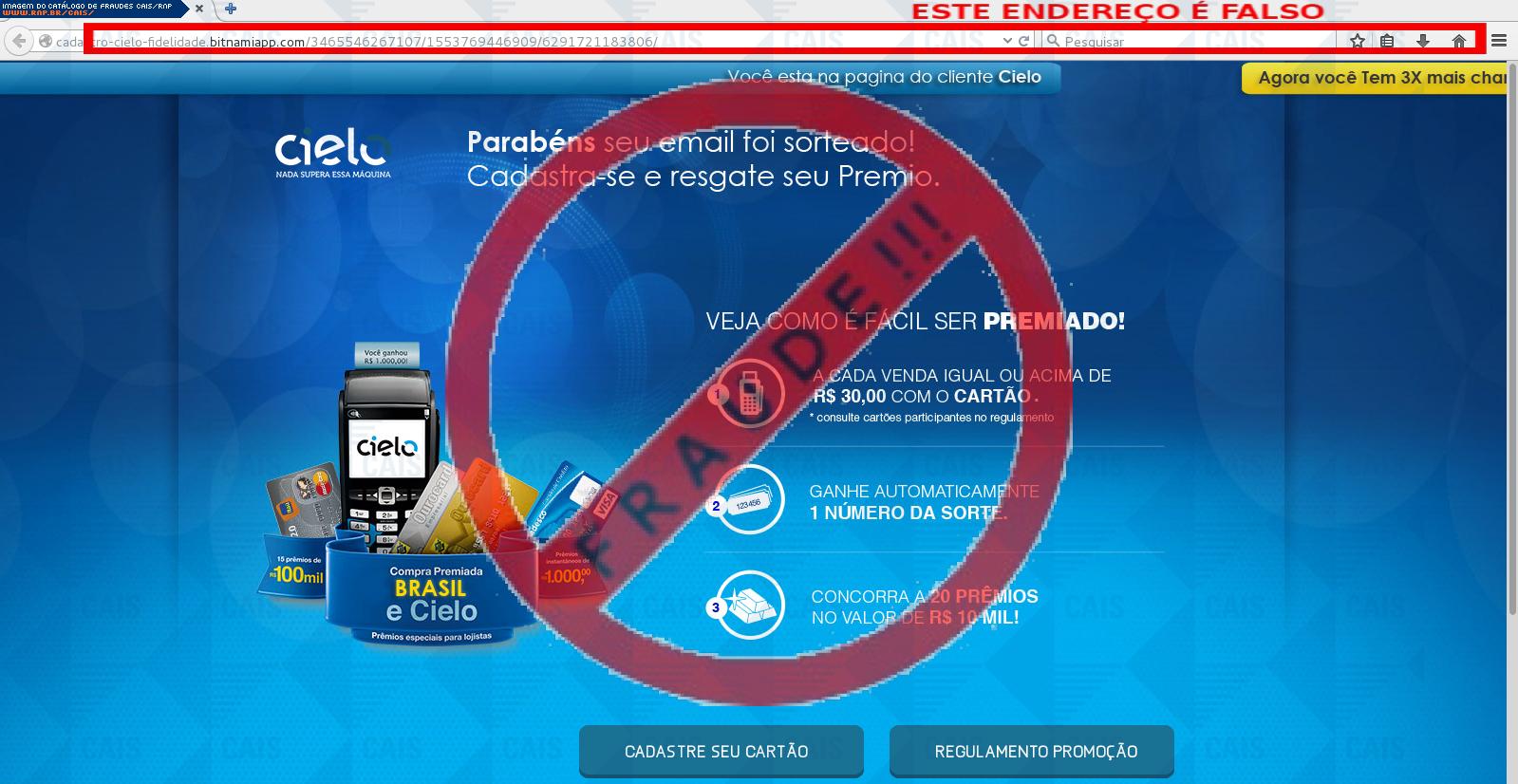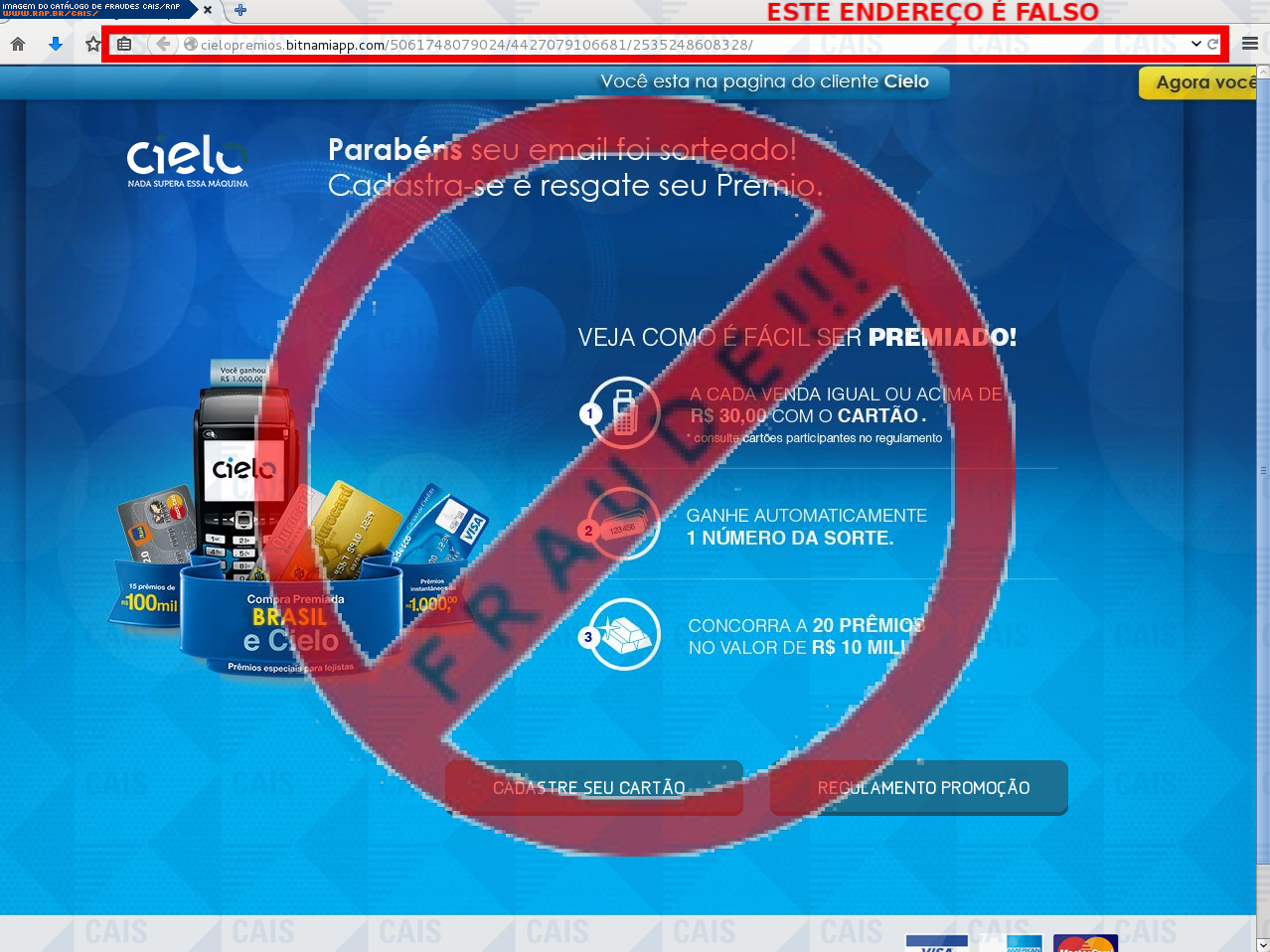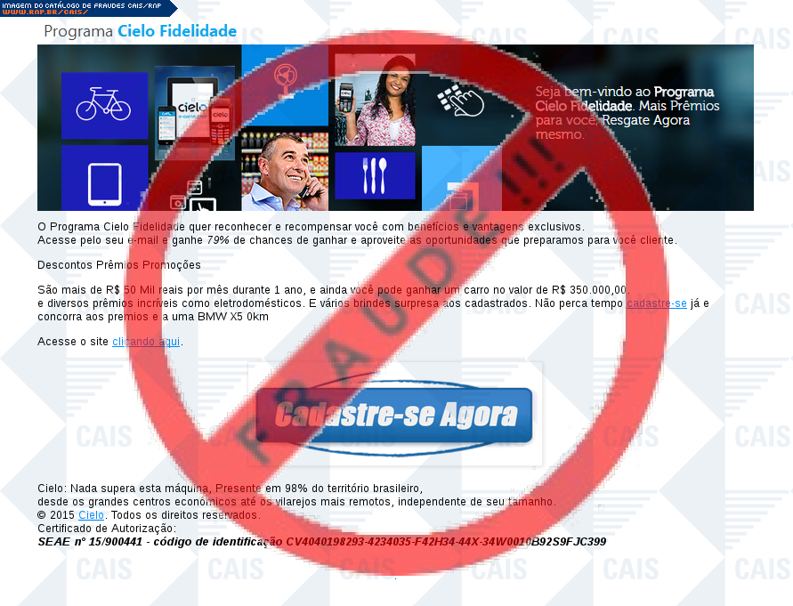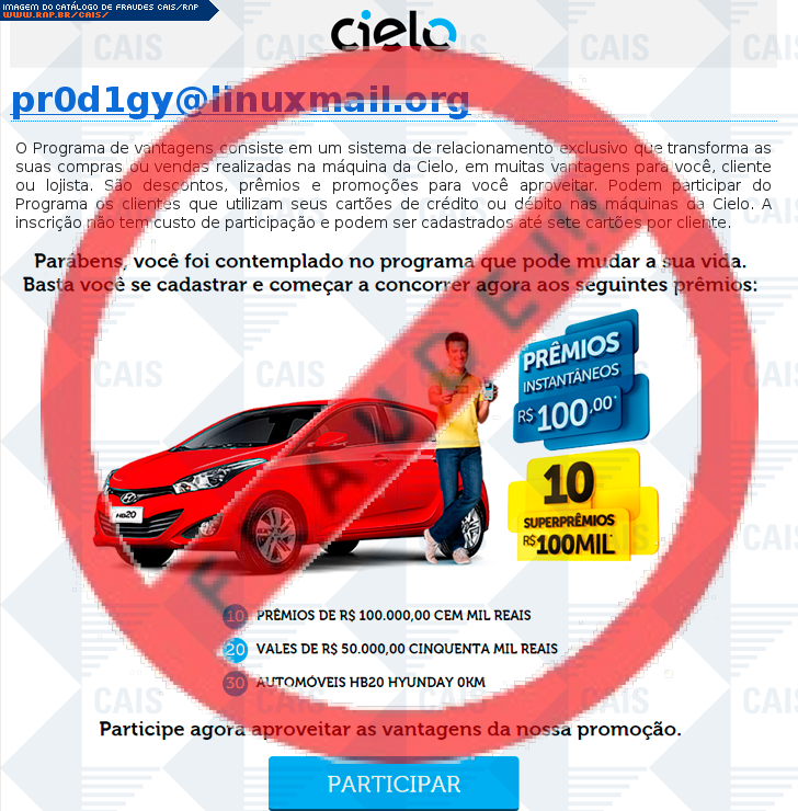 | tag | cartão, cielo, phishing, promoçôes, premios, premio | |