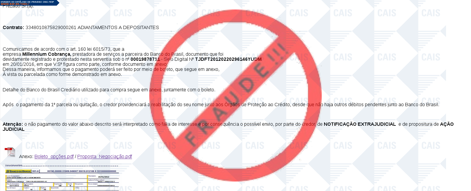| tipo | FRAUDE - Título Protestado | ID: 46031 |
