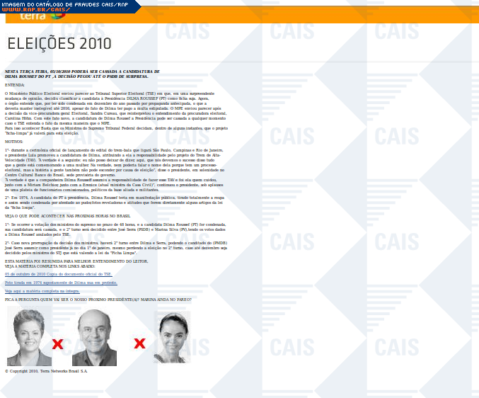 | arquivo malicioso | Noticia_eleicoes2010.scr | |