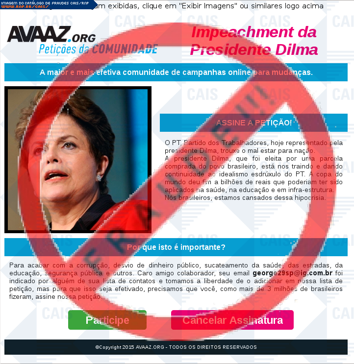 | arquivo malicioso | AssinarImpeachmentDilmaAVAAZ.org.exe | |