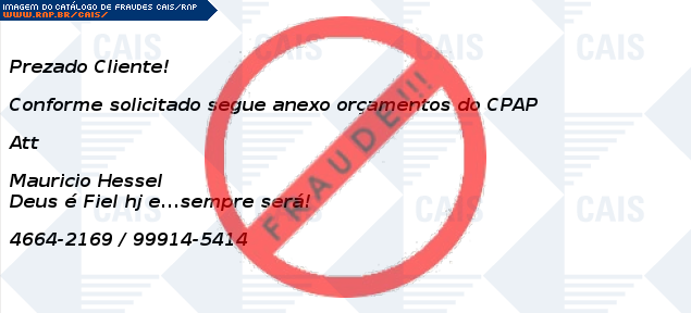 Esta página tem função informativa e educativa. Exibe uma coleção de imagens de phishing scam (fraudes eletrônicas) ou malware (código malicioso) veiculados por meio de spam (e-mail não-solicitado). Trata-se de conteúdo exemplificativo, não exaustivo, uma vez que não é possível contemplar todos os casos de fraudes existentes. Assim, caso você tenha conhecimento de um exemplar que não esteja aqui presente, isto não significa que não seja válido ou real. Inclusive incentivamos que você o envie para análise do CAIS para que, se for o caso, passe a integrar o nosso acervo.