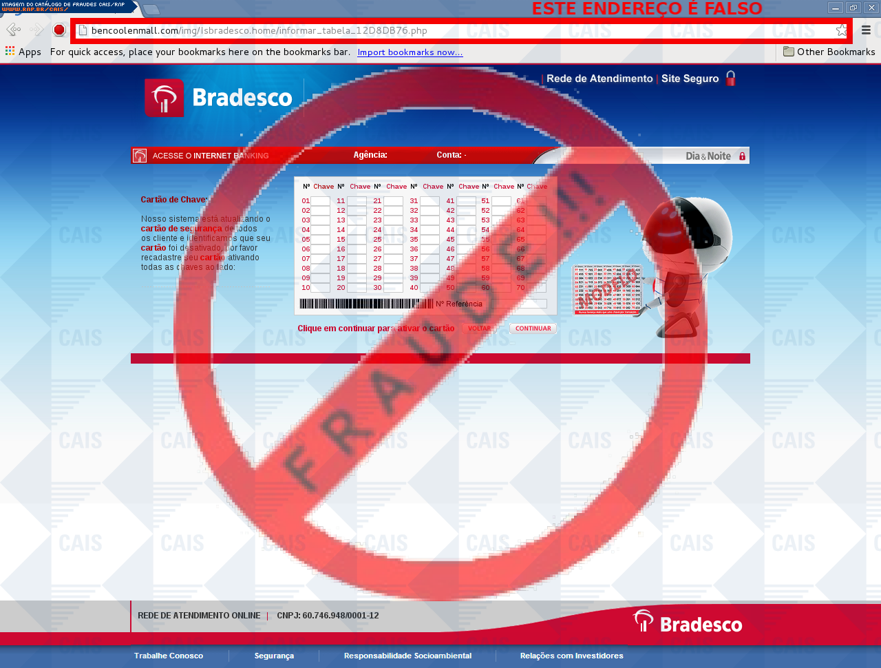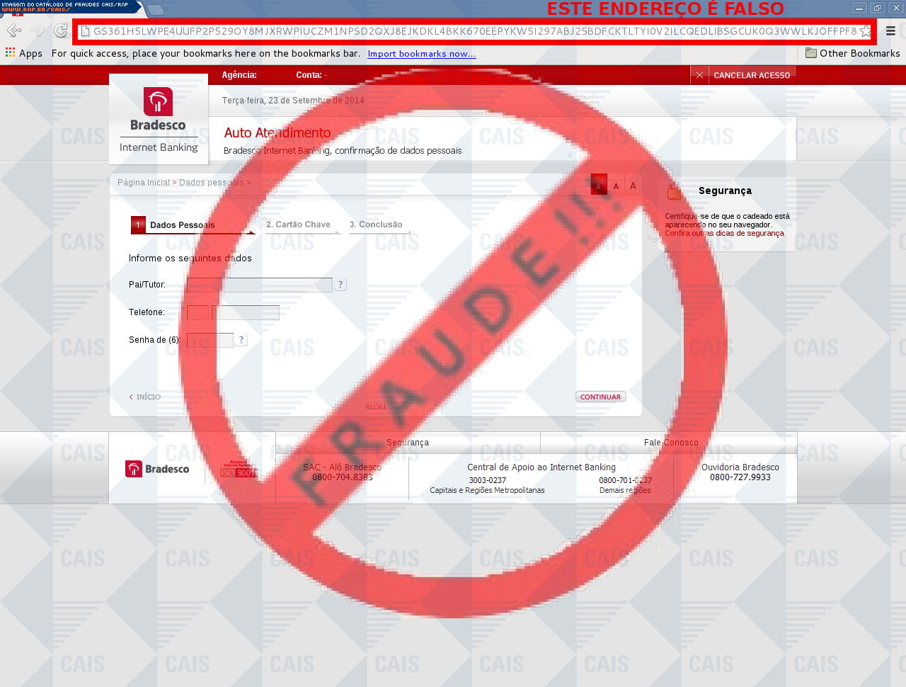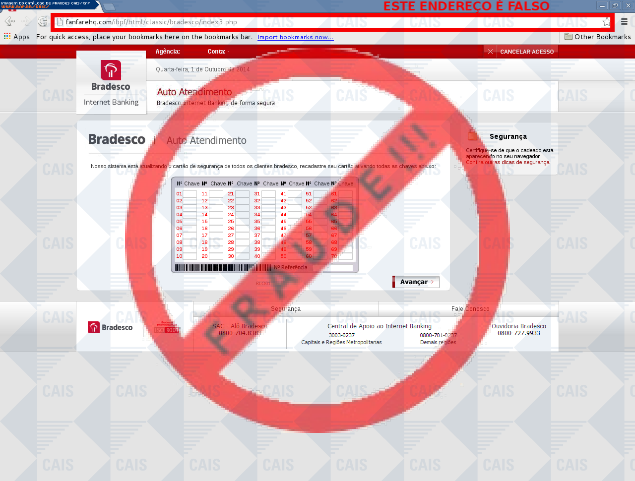 | tipo | FRAUDE - Bradesco chave de segurança | ID: 33581 |