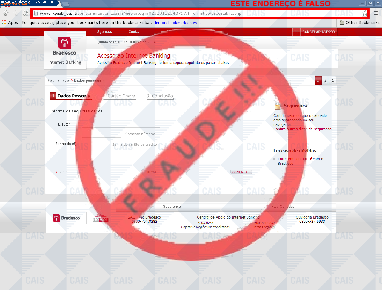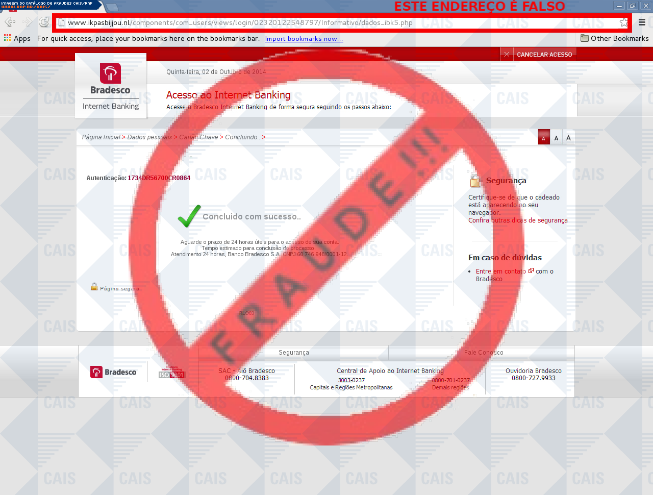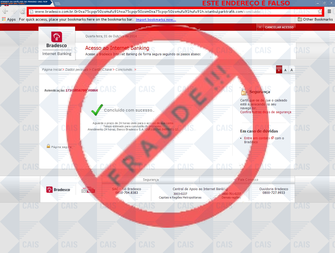 | tipo | FRAUDE - Bradesco chave de segurança | ID: 33581 |