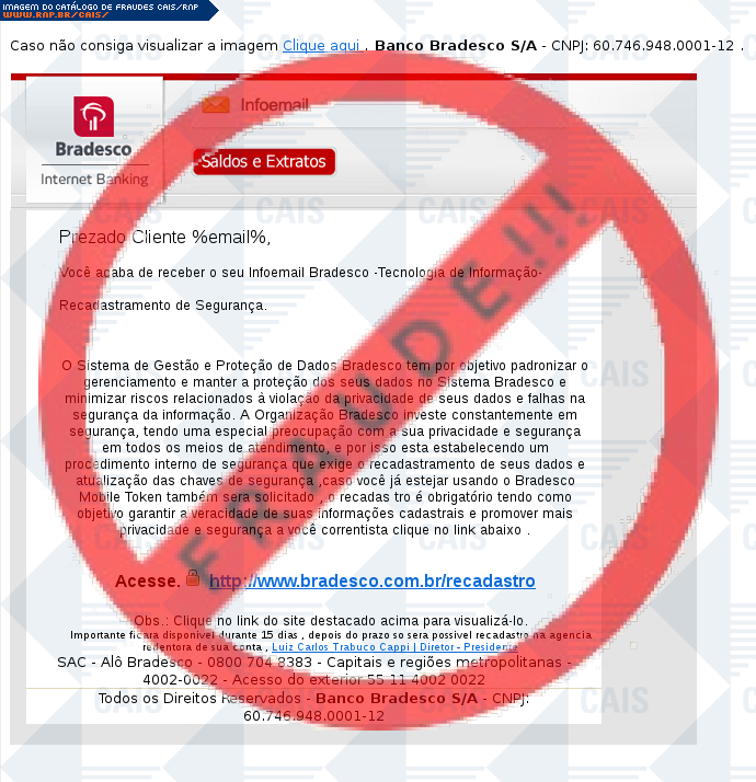 | assunto | infoemail Bradesco cadastro de segurança dan | |