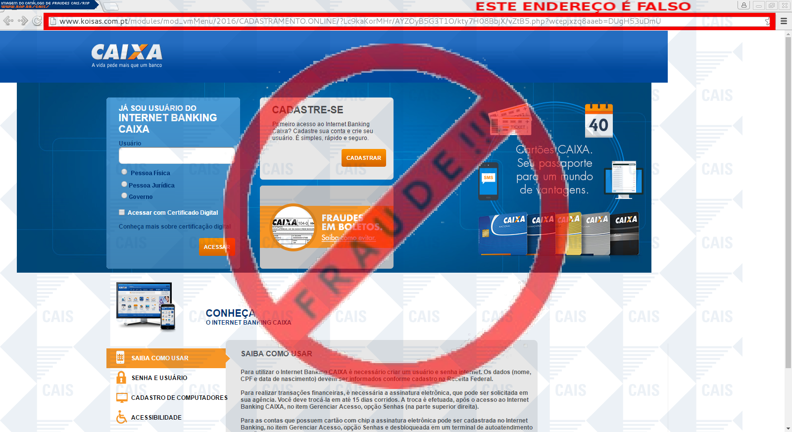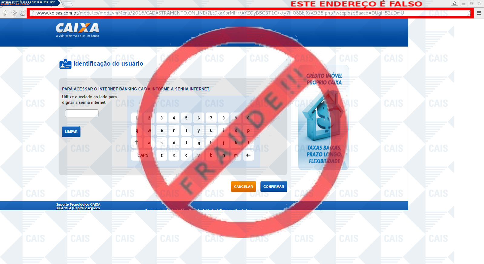 | tipo | FRAUDE - Caixa Econômica Federal | ID: 47896 |